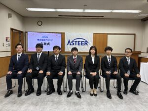 本年度は7名が入社し、式典では社長をはじめアステアユニオン執行委員長より激励の言葉が贈られました。